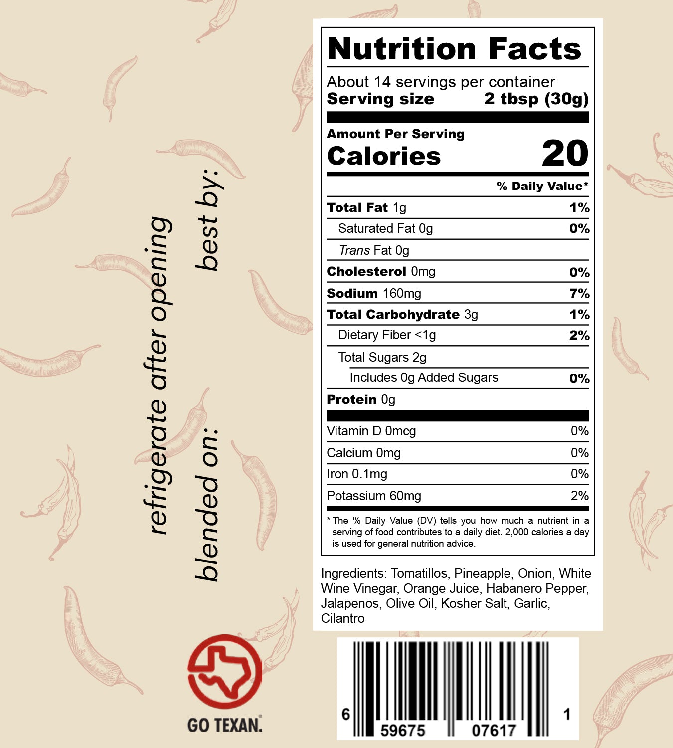 Dragon’s Breath brings bold sweet heat with pineapple, tomatillos and peppers in every bite. It’s adventurous, vibrant, and delicious with seafood, chicken, or tortilla chips.